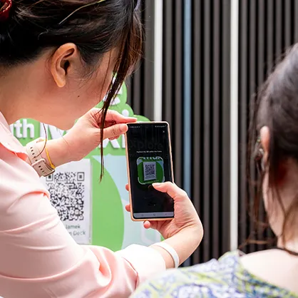 Then, look out for the green location markers along the staircase, and scan the QR code using the "Scan a QR & Check In" feature in your digital Passport.